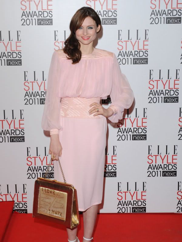 Sophie-Ellis Bextor looked pretty in pink in her vintage ensemble, I'm loving that purse!